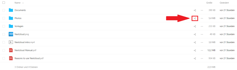 1. Klicken Sie neben dem Ordner/der Datei die Sie freigeben möchten auf das Symbol mit den drei verbundenen punkten.