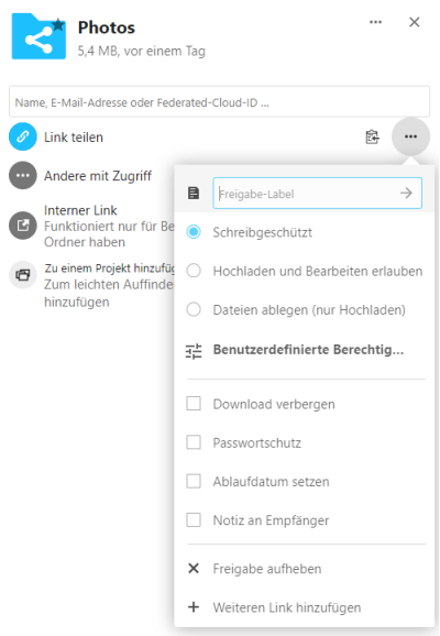 Auch eine Freigabe über einen öffentlichen Link ist möglich.