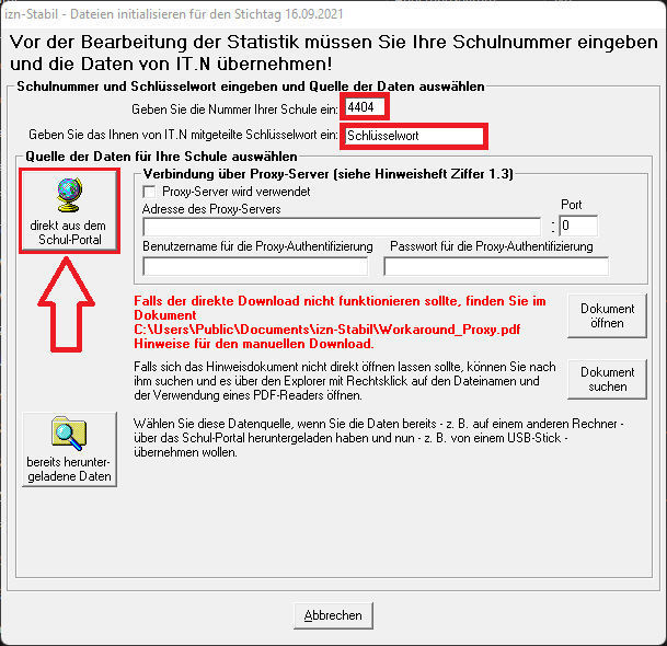 • Hinweis: !Achten Sie auf die angegebene Version! Die aktuelle Version von izn-Stabil wird erst wenige Tage vor dem Stichtag vom Land zur Verfügung gestellt.